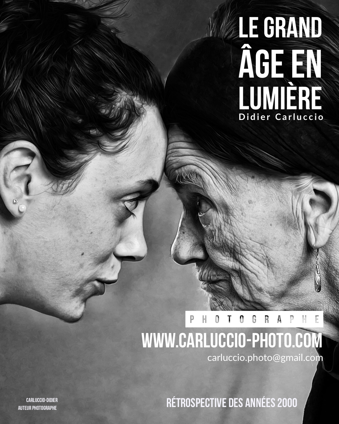 Cette rétrospective captivante vous invite à explorer plusieurs décennies d’expositions, débutant en 1992 et s’étendant jusqu’à l’année actuelle, 2023. Chaque affiche représente une étape unique de mon parcours artistique, reflétant l’évolution de ma vision créative au fil des ans. J’ai amorcé mon périple artistique en 1992 avec la photographie argentique, capturant des instants poignants au cœur des hospices.